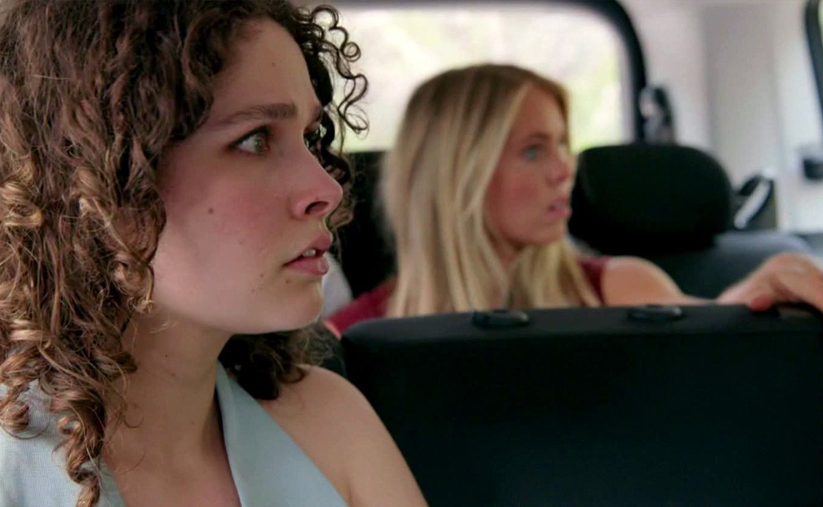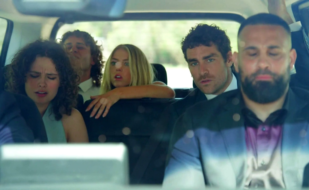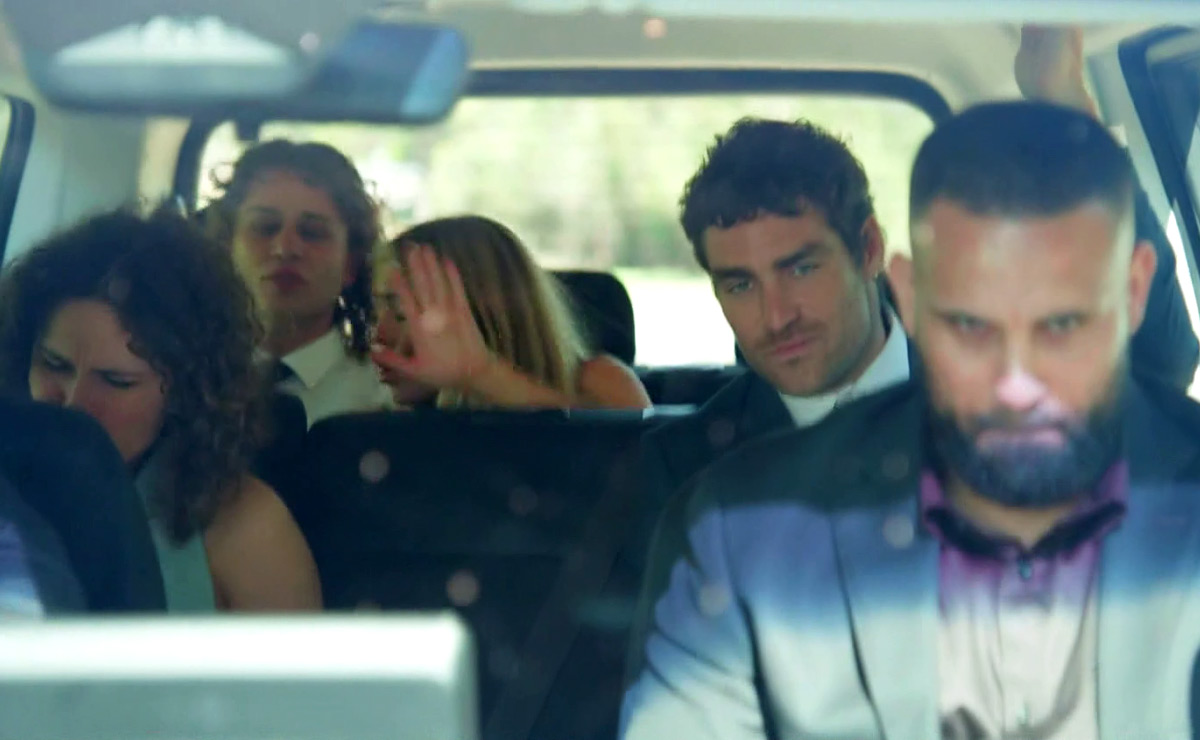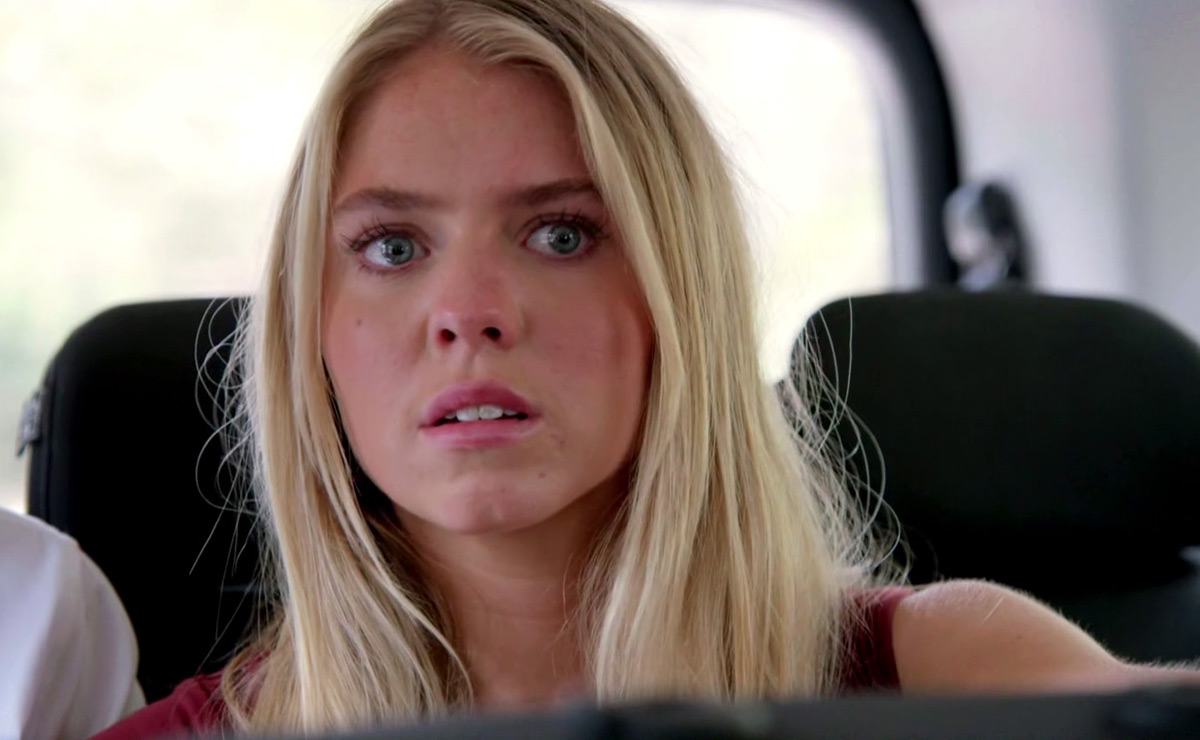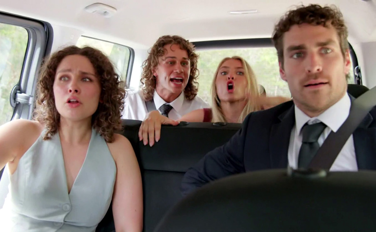 “Wait, guys, they’re coming this way,” Theo realises. “Dude, we’ve gotta go,” he calls to the driver, as Lacey begins to shout, “Go, go, go!”