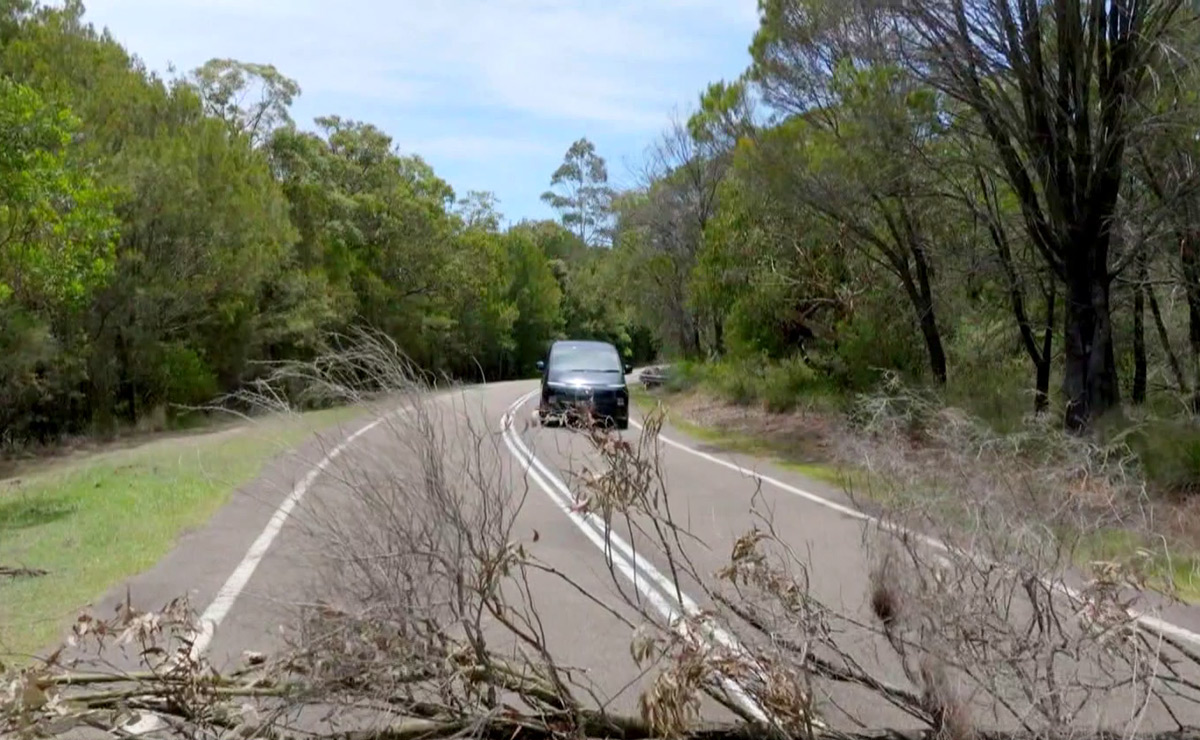 We see that the road is blocked by a large branch, intentionally placed there to prevent them from passing.