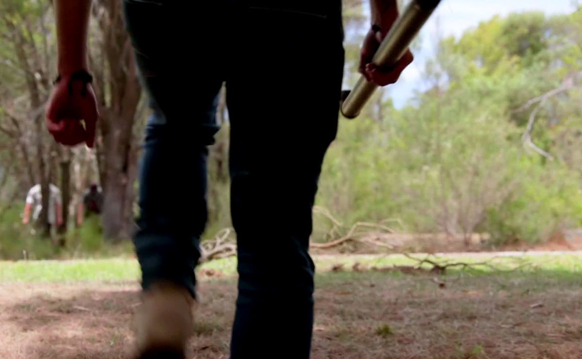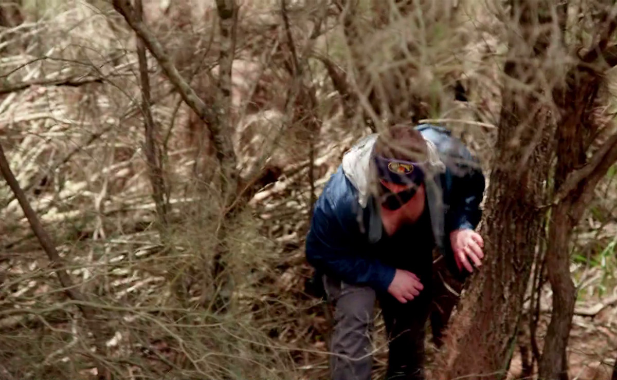 Suddenly, as they look around, they see men wearing balaclavas and masks emerge from the surrounding woodland, armed with baseball bats.